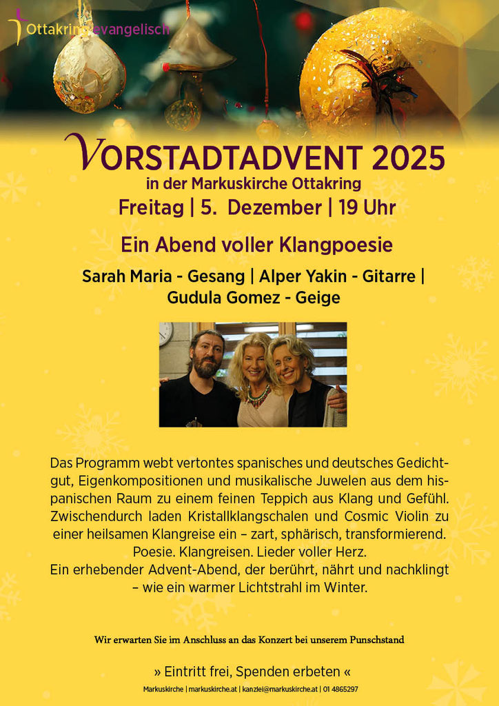 Freitag, 5. Dezember 2025 | 19:00 Uhr | Markuskirche Ottakring